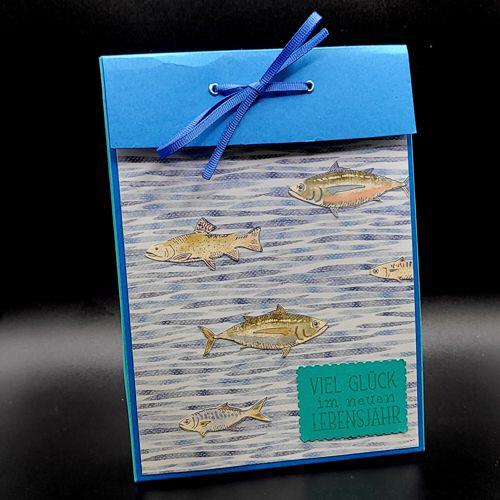 Auf der Vorderseite schmückten ausgestanzte Fische und ein Emblem die Verpackung.