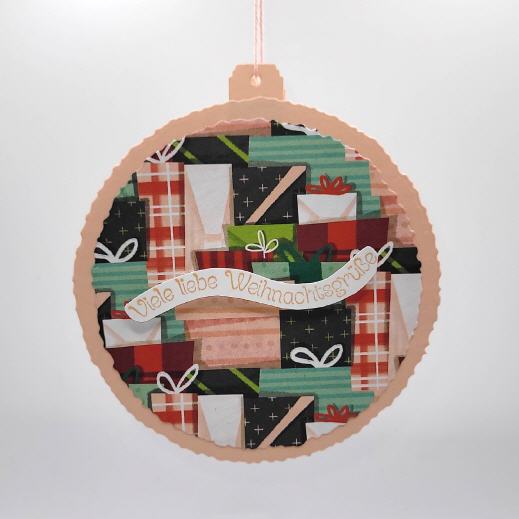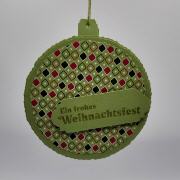 Weihnachtsdeko ähnlich einer Christbaumkugel zum befüllen aus Papier. Text: Viele liebe Weihnachtsgrüße