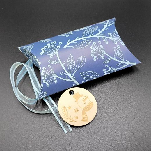 Die ovale Box zum befüllen mit Bändchen, Holzanhänger und einem transparenten Stoffsäckchen eignet sich durch seine Abmessungen hervorragend um eine größere Kleinigkeit zu Verpacken.