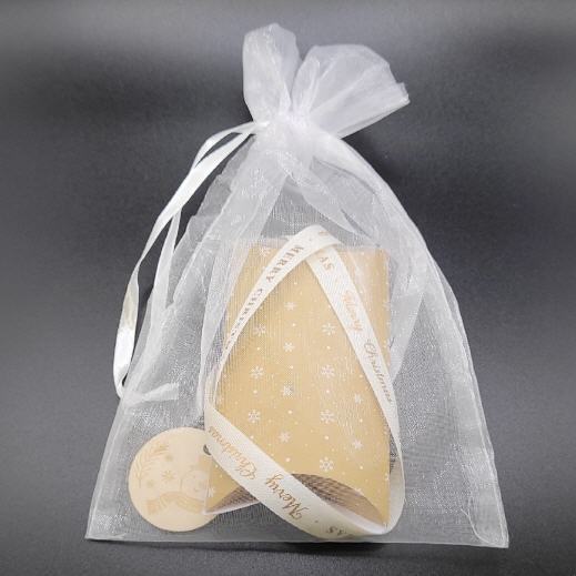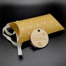 Ovale Verpackung mit Stoffsäckchen, gold/Schnee