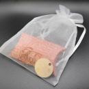 Die ovale Box zum befüllen mit Bändchen, Holzanhänger und einem transparenten Stoffsäckchen eignet sich durch seine Abmessungen hervorragend um eine größere Kleinigkeit zu Verpacken.