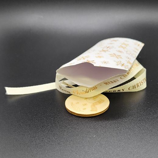 Ovale Verpackung mit Stoffsäckchen, weiß/gold