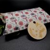 Ovale Verpackung in Handarbeit aus Designerpapier hergestellt mit einem transparenten Stoffbeutel.