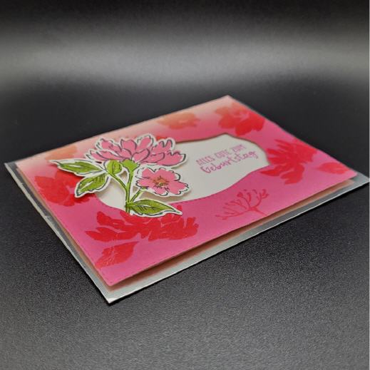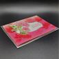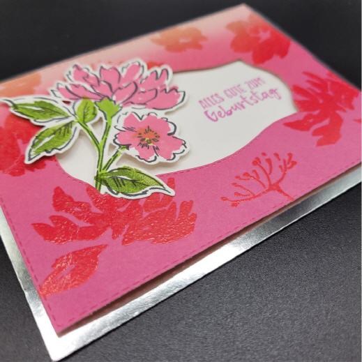 Das Deckblatt mit Blumenmotiv ist auf Abstand angebracht worden, dadurch entsteht ein sanfter 3D Effekt.