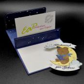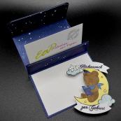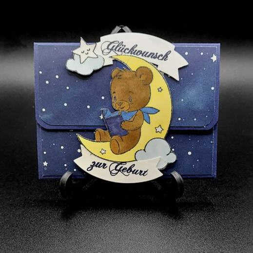 Gutscheinkarte Bärchen zur Geburt, Marineblau