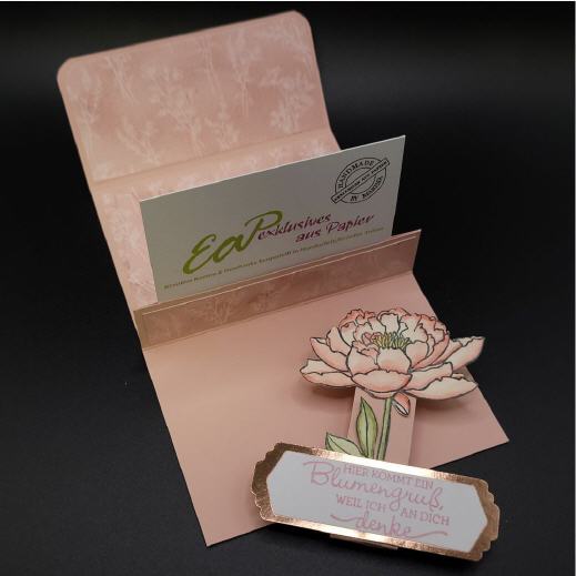Zugehalten wird die Karte von einer Banderole mit ausgestanztem Motiv, ebenfalls aus hochwertigem Papier.