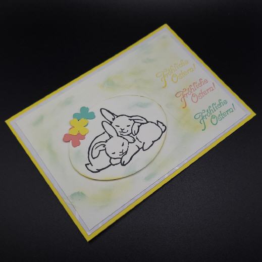 Gestaltete Osterkarte mit dem Text, "Fröhliche Ostern!"