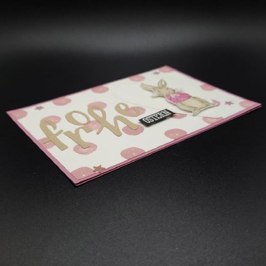Gestaltete Osterkarte mit dem Text, "Frohe Ostern"