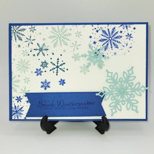 Gestaltete Weihnachtskarte mit dem Text, "Ein Hauch Winterzauber zum Weihnachtsfest"