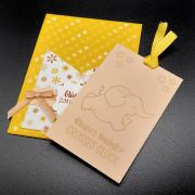 Der Geschenkanhänger wird mit einem farblich abgestimmten Band gehalten.