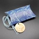 Ovale Verpackung mit Stoffsäckchen, blau/Floral