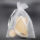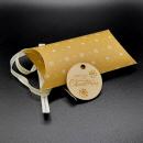 Ovale Verpackung mit Stoffsäckchen, gold/Schnee