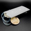 Die ovale Box zum befüllen mit Bändchen, Holzanhänger und einem transparenten Stoffsäckchen eignet sich durch seine Abmessungen hervorragend um eine größere Kleinigkeit zu Verpacken.