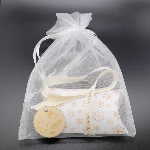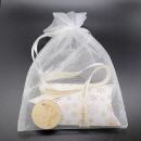 Ovale Verpackung mit Stoffsäckchen, weiß/gold