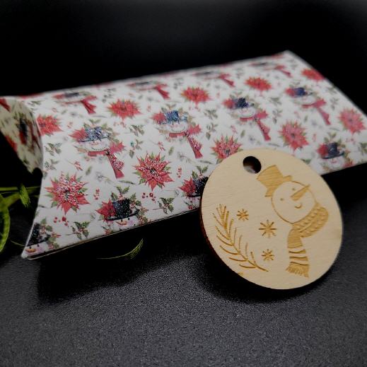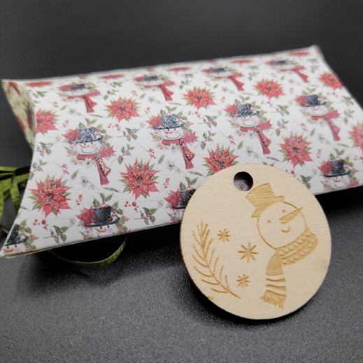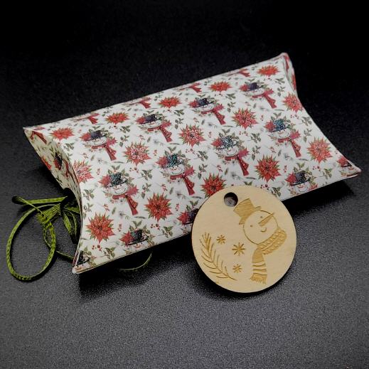 Ovale Verpackung mit Stoffsäckchen, weiß/Schneeman