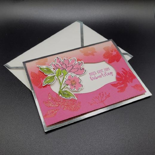 Geliefert wird die Karte mit einem passenden Umschlag mit einem Chromrand.