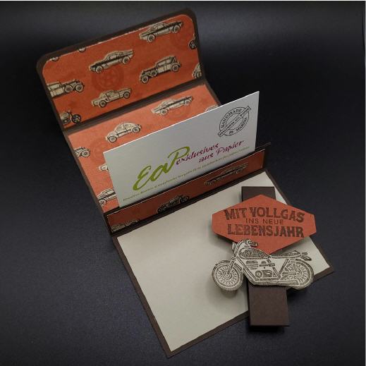 Handgearbeitete Gutscheinkarte zum Geburtstag aus hochwertigem Designerpapier.