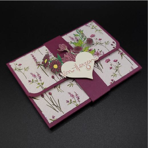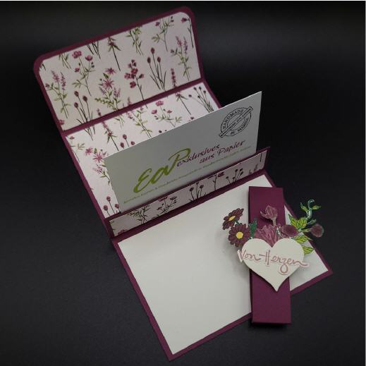 Zugehalten wird die Karte von einer Banderole mit ausgestanztem Motiv, ebenfalls aus hochwertigem Papier.