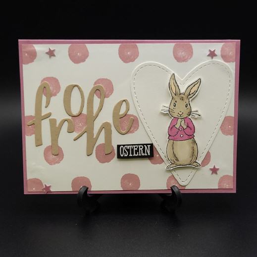 Gestaltete Osterkarte mit dem Text, "Frohe Ostern"