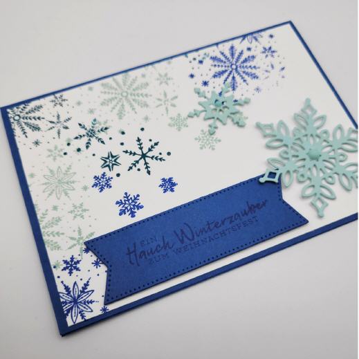Gestaltete Weihnachtskarte mit dem Text, "Ein Hauch Winterzauber zum Weihnachtsfest"