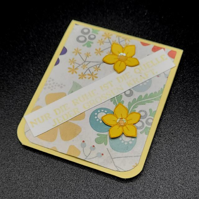 Das Lesezeichen hat die Grundfarbe Zitronen Parfait.
